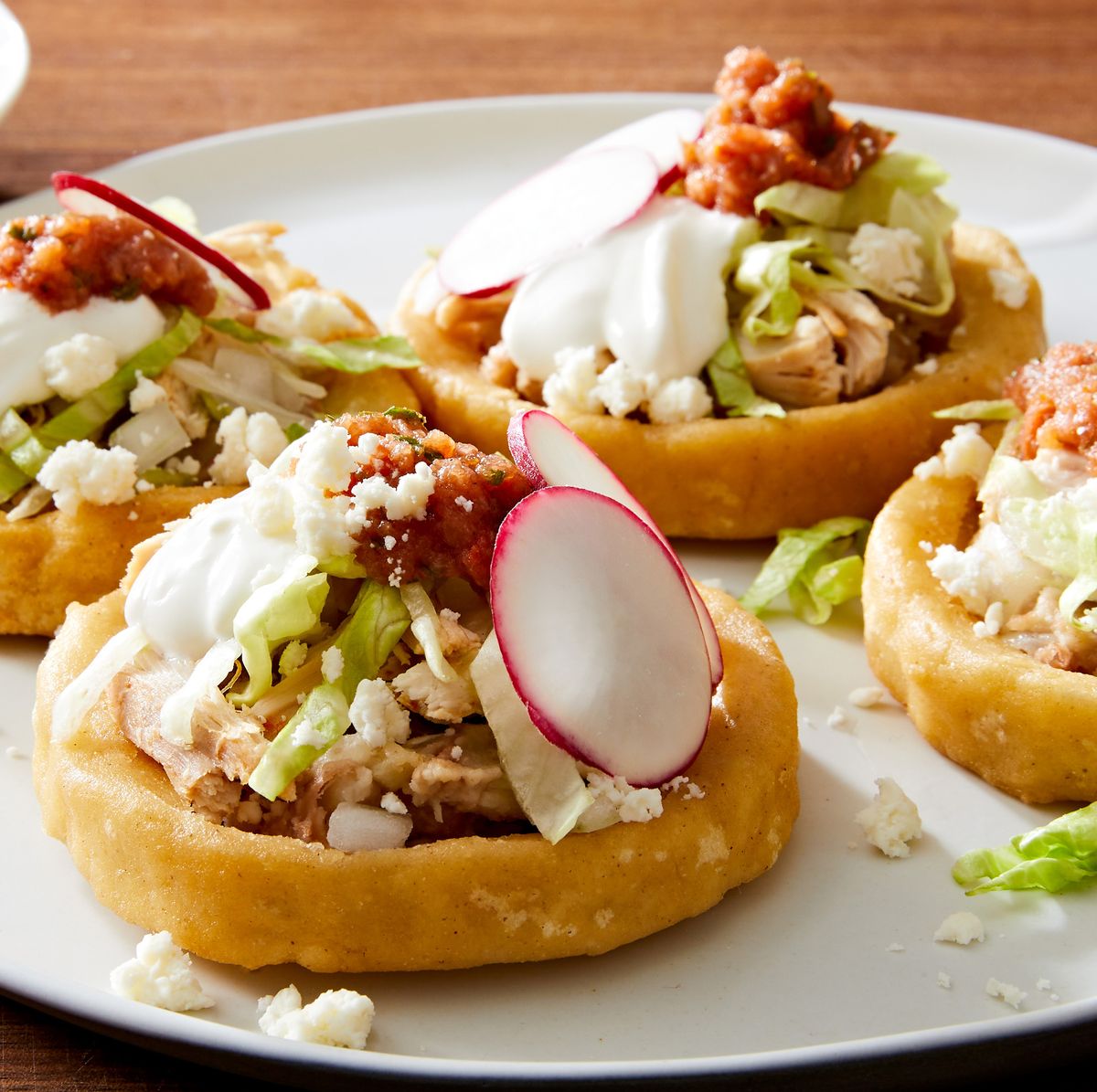 Sopes Thick tortillas topped with beans, cheese, and salsa 157.00