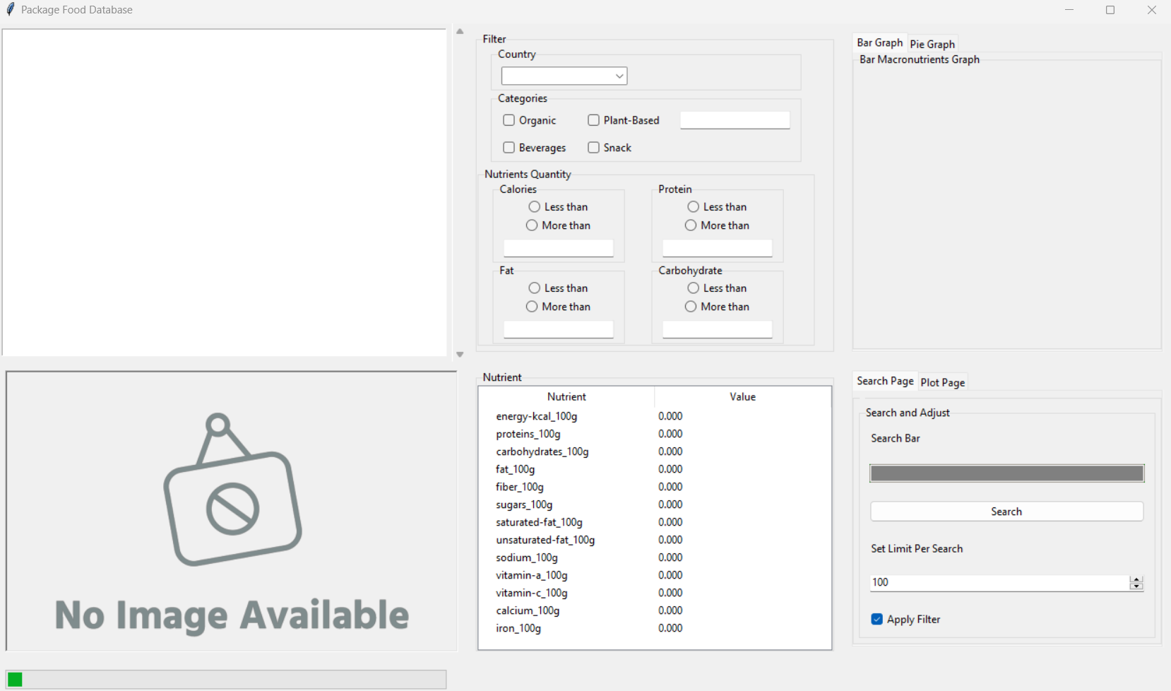 GUI Application that explore and analyze packaged food dataset